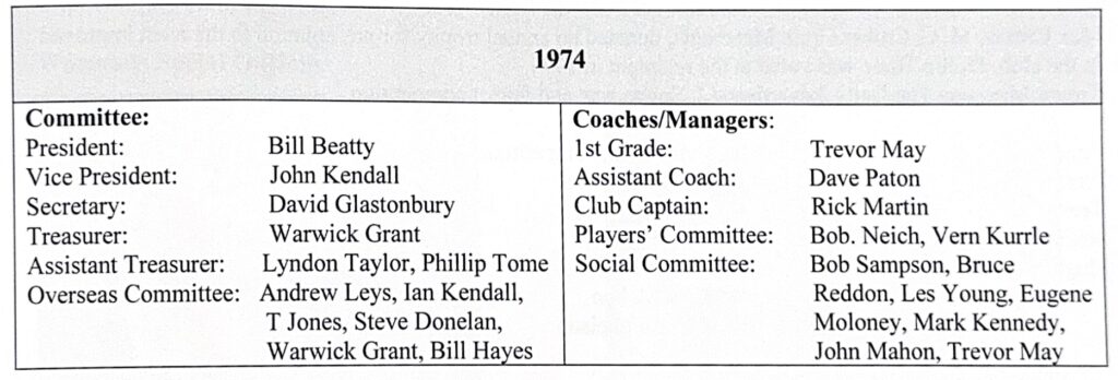 The inaugural Max Croker trophy for most improved player went to regular 2nd XV player, Phillip Tome. Phil followed that up progressing to 1st XV in 1975 and continued through to be part of the successful 1977 grand final team.
