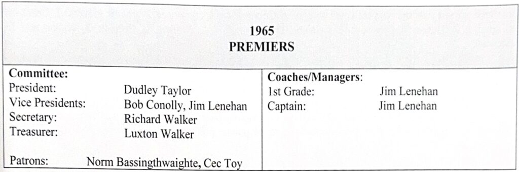 Players with the highest number of points in 1965: Beres Ellwood, Col Wood, Mike Ogier, Rex Burne, Roger Griffiths, Robin Ellerman, Bill Heffernan